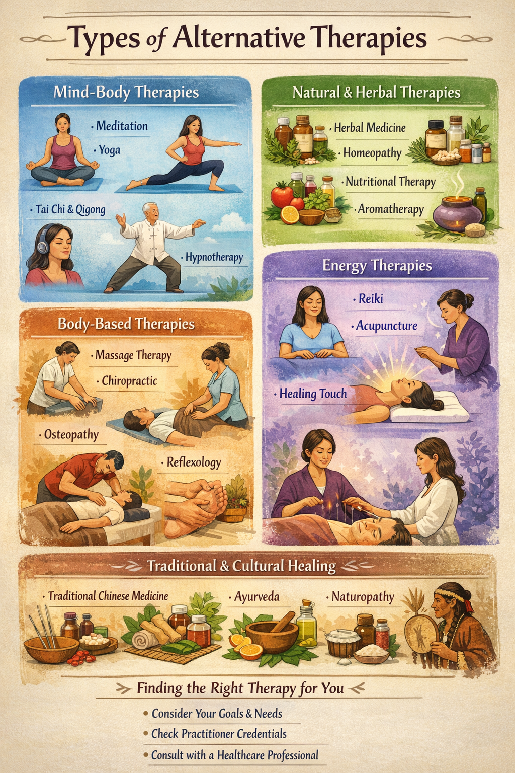 People often explore alternative therapies for stress relief, chronic pain, emotional balance, or general wellbeing. If you’re considering trying one, it’s wise to: